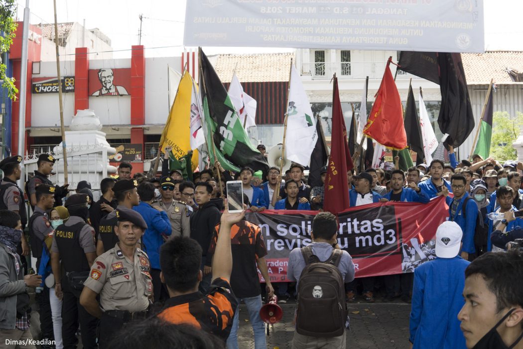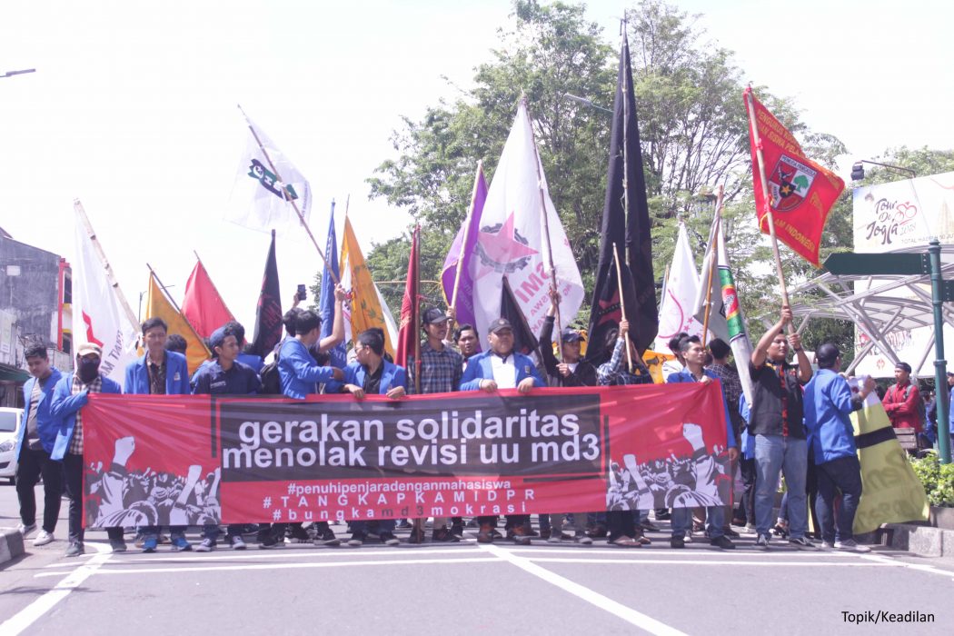 Bentuk penolakan mahasiswa terhadap Pasal 15, Pasal 73 ayat (4) dan Ayat (5), Pasal 84, Pasal 112 huruf k, Pasal 245, dan Pasal 260 Undang-Undang Nomor 17 Tahun 2014 tentang MPR, DPR, DPRD, dan DPD (UU MD3) diawali dengan konsolidasi. Acara ini dilaksanakan di Hall Gedung Fakultas Hukum Universitas Islam Indonesia, pada hari Selasa (20/03/2018) pukul 18.30. Persiapan ini dilakukan untuk mendata nama-nama instansi atau organisasi yang tergabung dalam gerakan solidaritas menolak revisi UU MD3.