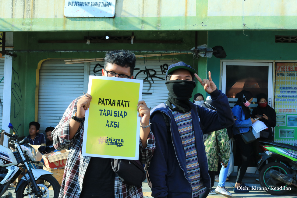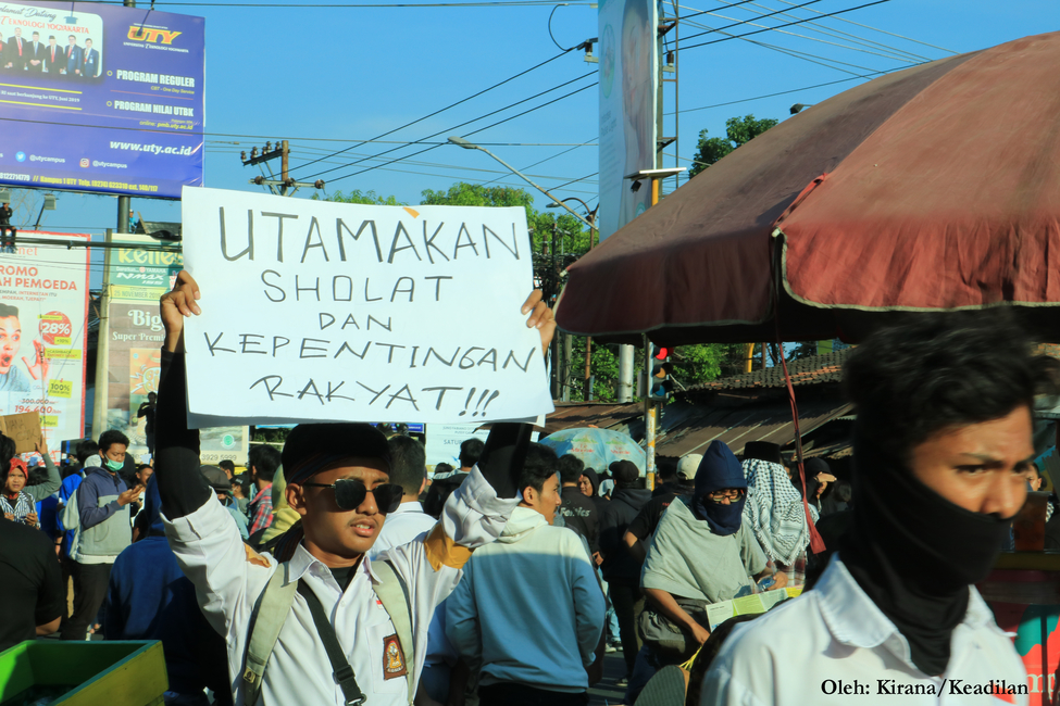 Ribuan massa aksi Gejayan Memanggil II dari berbagai elemen masyarakat berkumpul di jalan Affandi, Yogyakarta pada Senin (30/09/2019). Gejayan Memanggil II dimotori oleh Aliansi Rakyat Bergerak yang merupakan gabungan dari beberapa organisasi, komunitas, dan universitas.