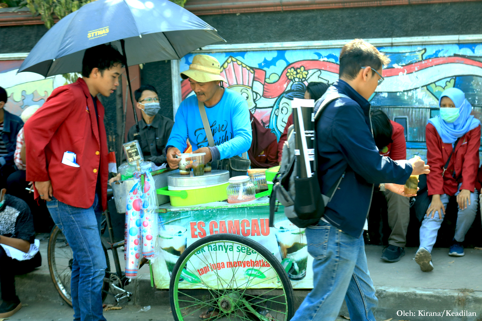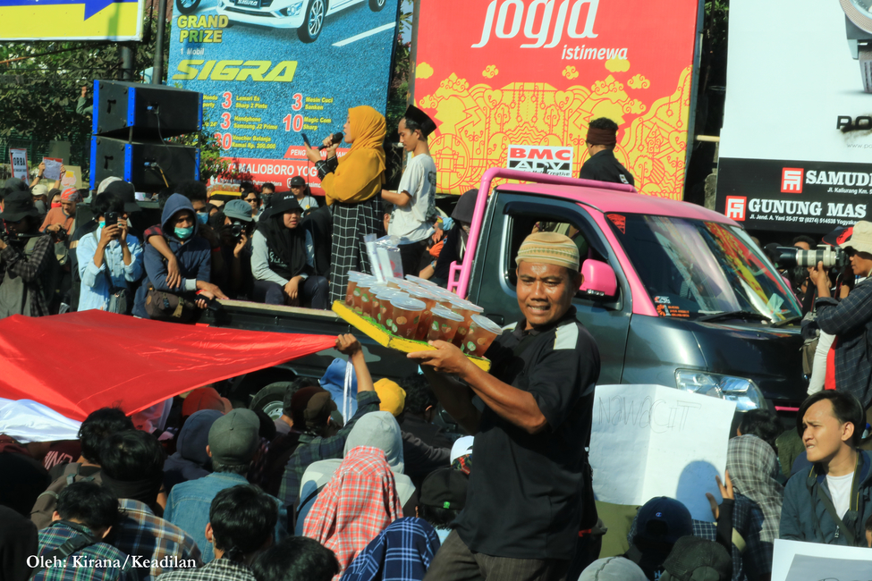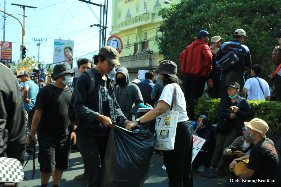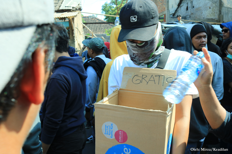 Selain kreativitas para pembuat poster, juga terdapat pemandangan unik lain dalam aksi ini. Salah satunya ialah uluran tangan dari masyarakat yang membagikan air bersih maupun nasi bungkus. Tak hanya itu, ramainya massa aksi juga dimanfaatkan oleh para pencari nafkah yang nampak menjajakan dagangannya di kerumunan.