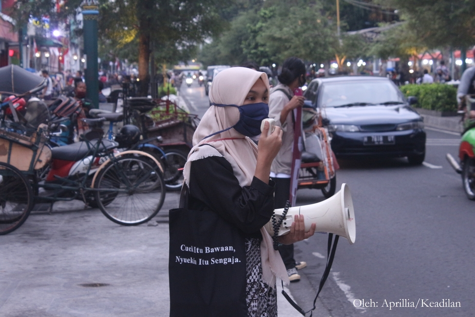 Aksi ini juga bertujuan menyadarkan masyarakat mengenai pentingnya mengesahkan RUU PKS. Dalam orasinya juga disampaikan terkait masih banyaknya kasus kekerasan seksual yang nihil penyelesaian hingga saat ini. Berbagai macam poster propaganda juga turut dibawa oleh massa aksi guna menyampaikan hal yang sama. Disamping itu, beberapa massa aksi juga membagikan selebaran yang berisi tuntutan aksi kepada para pengendara yang melintasi Jalan Malioboro.